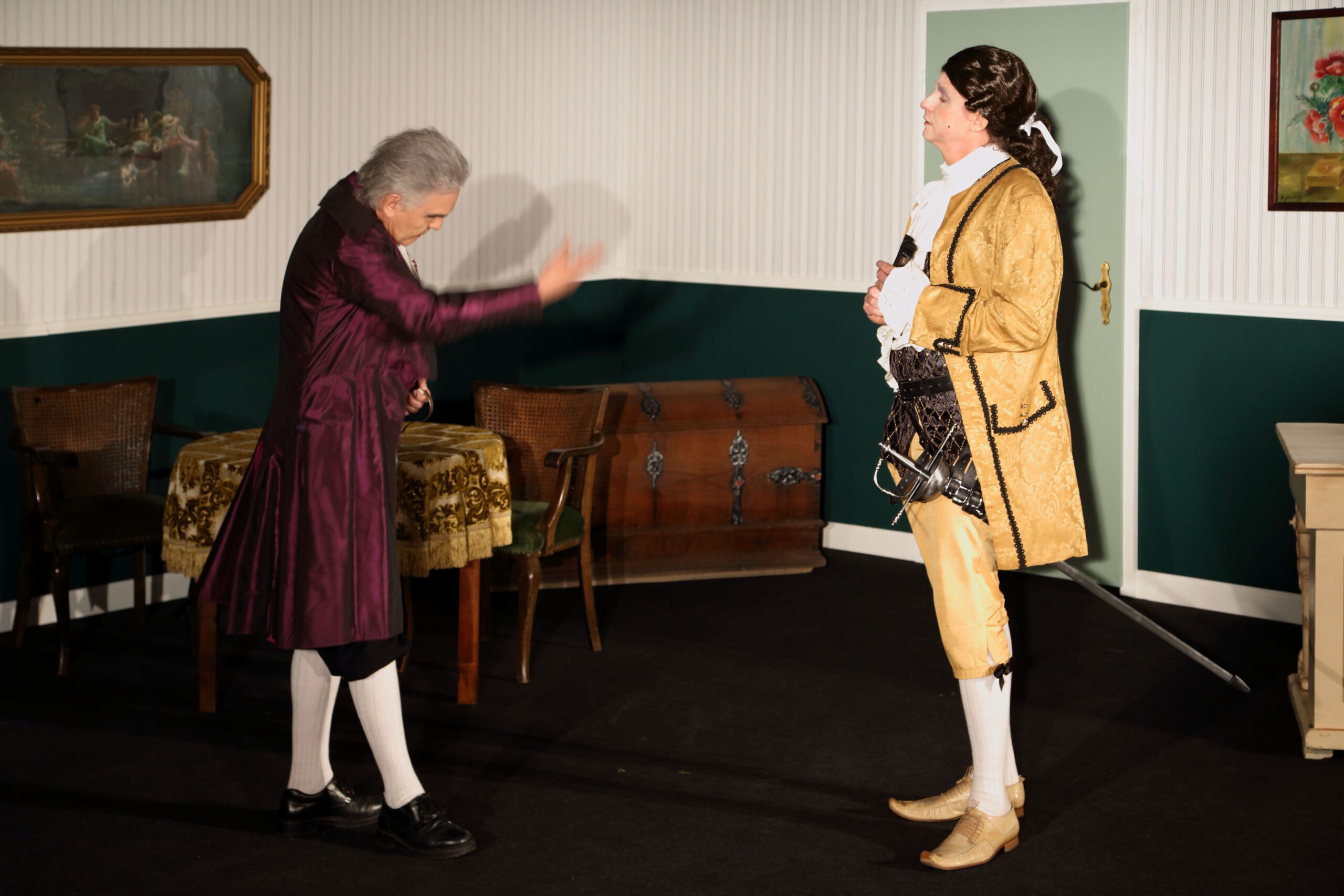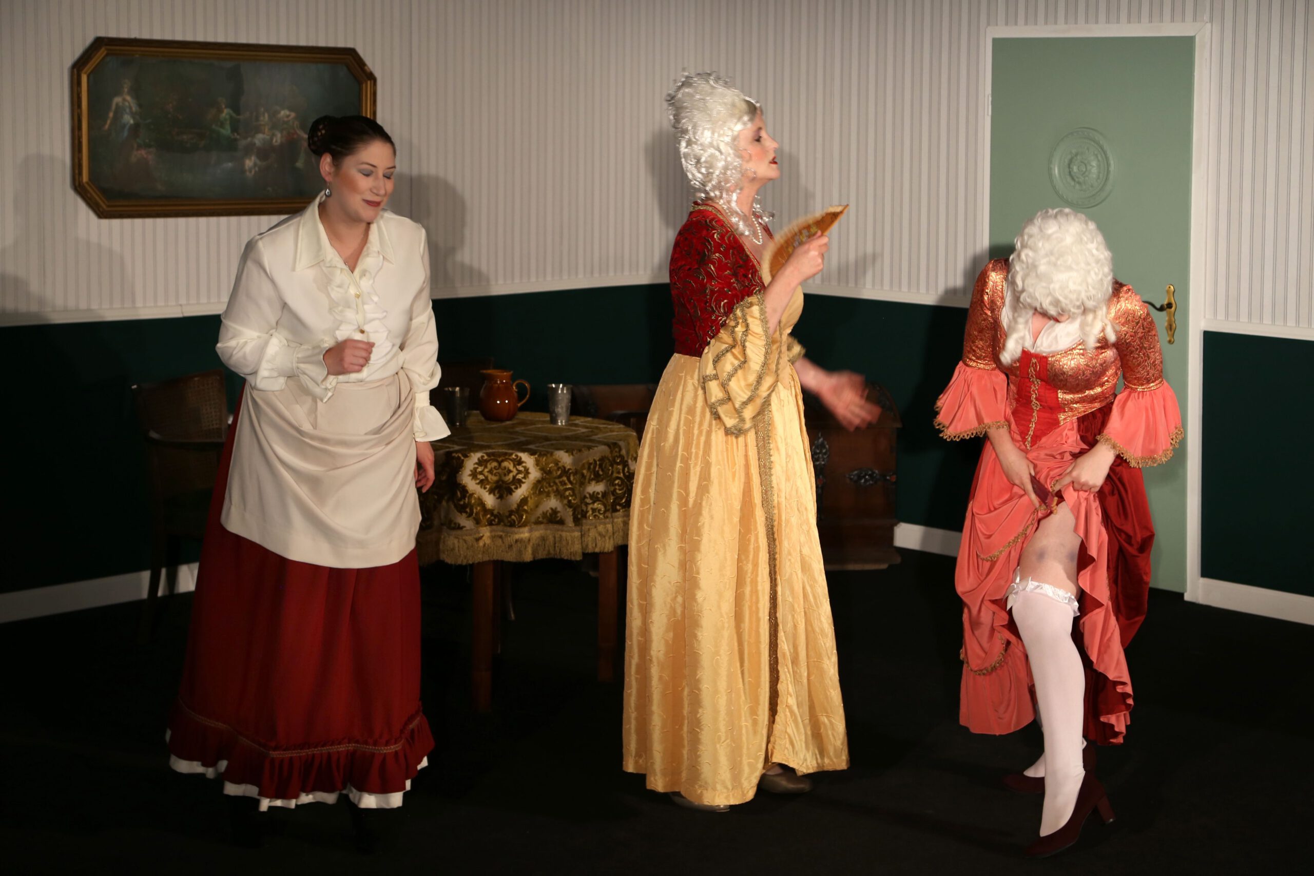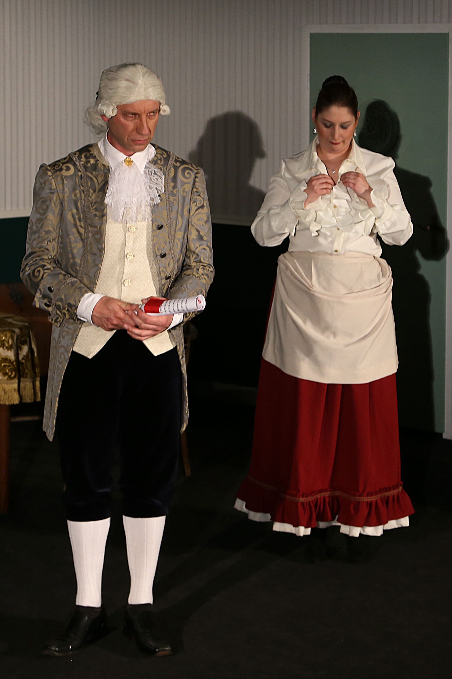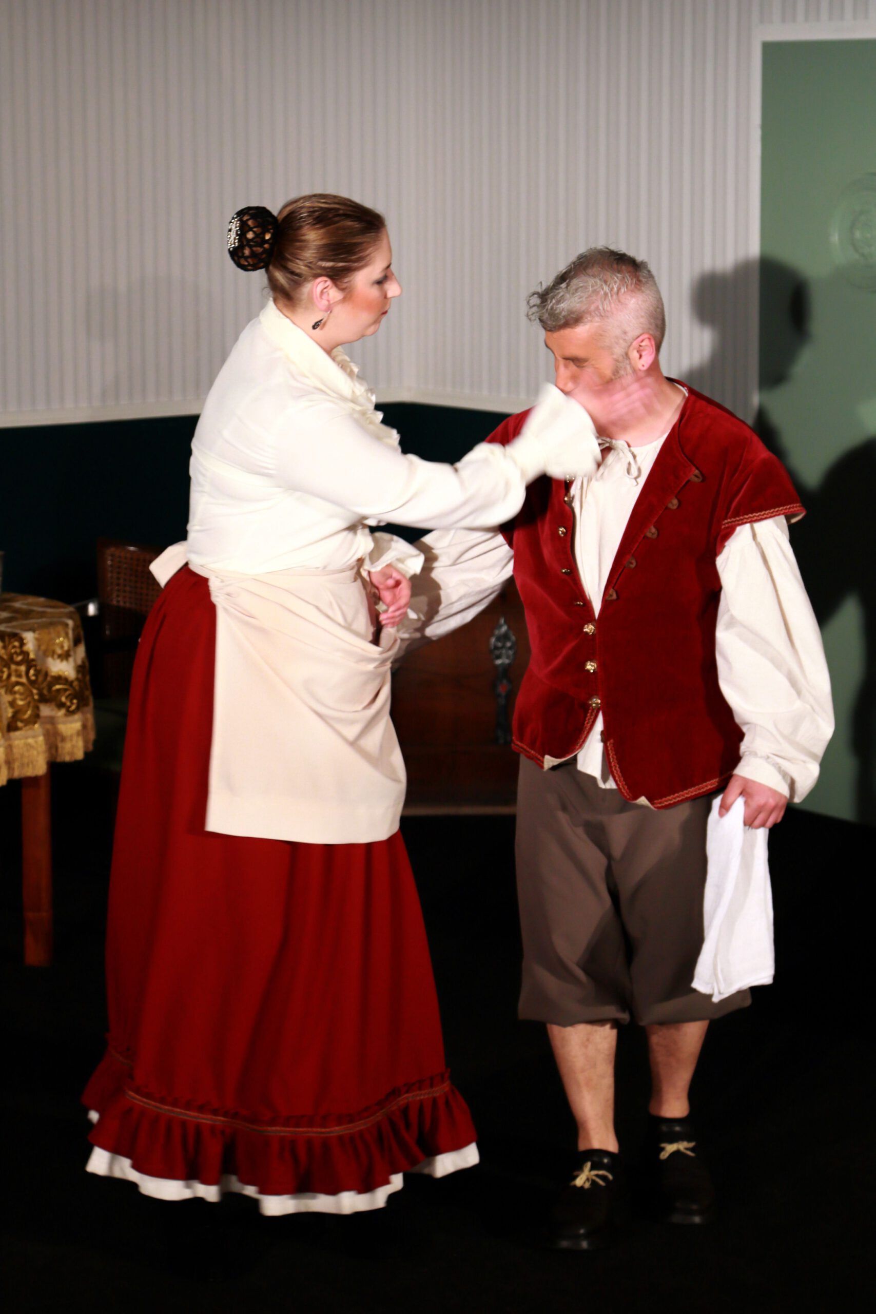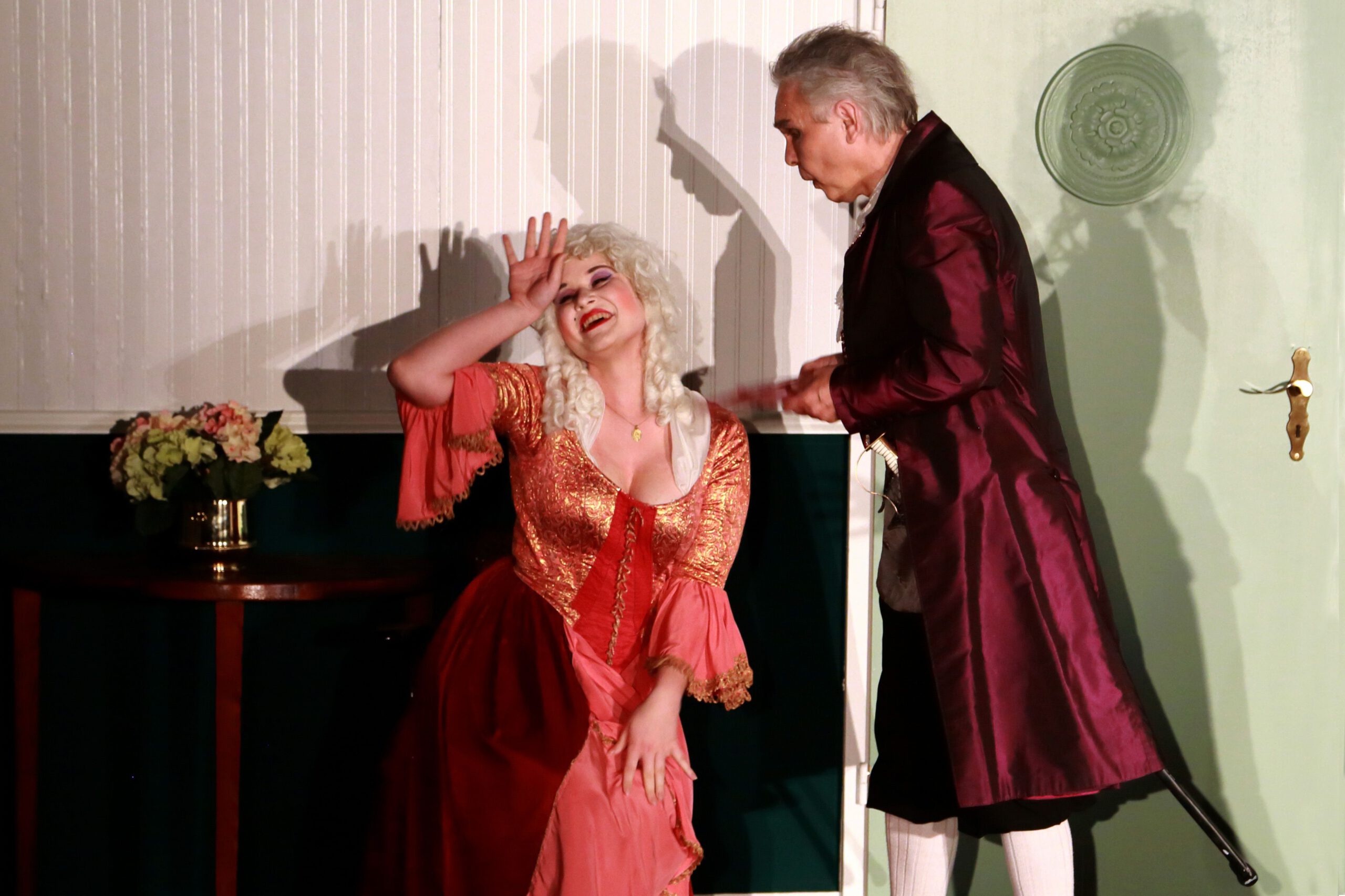 | ISERLOHN. Eine vollbusige Wirtin, die fast allen Männern den Kopf verdreht, ein Kellner, der sich wie ein Macho aufführt und viele weitere Charaktere. Das Theaterstück Mirandolina wurde am 03. Juni zum ersten Mal im Parktheater Iserlohn aufgeführt. Was in dem Stück passiert, und ob sich der Gang ins Theater lohnt, hat MAERKZETTEL für Sie herausgefunden. „Weiber sollen wissen, wer der Herr im Haus ist“ oder „Die Frau ist die Verkörperung der Sünde und die Bestrafung des Mannens“. Diese Zitate und noch viele mehr brachten das Publikum zum Lachen. Das Stück spielt 1750, als die attraktive Wirtin Mirandolina ein Gasthaus führt und nebenbei ihren männlichen Besuchern den Kopf verdreht. Sie ist sich ihrer Attraktivität bewusst und weiß genau, wie man die Männer um den Finger wickelt. Ihren Gästen, einem armen Marchese und einem reichen Grafen, hat sie bereits den Kopf verdreht. Auch ihr Kellner Fabrizio, ein Macho mit ganz eigenen Ansichten, scheint unsterblich in Mirandolina verliebt zu sein. Sie ist gelangweilt und sucht eine neue Herausforderung, welche sie in dem frauenverachtenden Cavaliere, ebenfalls einem ihrer Gäste, sieht. Für Fabrizio sind der Marchese und der Graf große Konkurrenz und deshalb versucht er beide von Mirandolina fernzuhalten. Hierfür arrangiert er zwei Schauspielerinnen, die den beiden Männern den Kopf verdrehen sollen. In dem Cavaliere jedoch, sieht er keine Konkurrenz, da dieser frauenfeindlich ist und kein Interesse daran hat, sich auf eine Dame einzulassen. Doch schafft Mirandolina es, den Cavaliere um den Finger zu wickeln und geht Fabrizios Plan auf – oder steht hinter seiner ganzen Masche ein anderes Ziel? Ungefähr fünfzig Besucher lachten und amüsierten sich eineinhalb Stunden in dem kleinen Saal, der fast vollständig ausverkauft war. Die Bühne war sehr nah am Publikum, wodurch eine gemütliche und persönliche Atmosphäre entstanden ist. „Ich fand es so toll, wie die Schauspieler auch mit uns während des Theaterstückes kommuniziert haben“, erzählt die 65-jährige Irmhild Brunner. Die Schauspieler bezogen das Publikum immer wieder mit ein. Dies erfolgte durch gezielten Augenkontakt oder direkte Ansprache der Zuschauer. Im Laufe des Stückes wurden ebenfalls viele Monologe geführt und so, nach und nach, die einzelnen Personen des Stücks vorgestellt. Dadurch konnten die Zuschauer der Handlung gut folgen und es hat sich im Laufe des Stückes aufgeklärt, welche Geschichte hinter den einzelnen Figuren stand. Es wurde sehr viel gelacht und geklatscht, denn das Theaterstück ließ viel Raum für Klischees und Ansichten, die Männer teilweise gegenüber Frauen haben. Da das Stück in der Barockzeit spielt, fielen die Kostüme dementsprechend auffällig und pompös aus. Es wurde viel mit Perücken gearbeitet und auch die Einrichtung der Bühne passte zum Zeitalter. Drei Mal wurde das Bühnenbild gewechselt und somit konnten viele verschiedene Situationen dargestellt werden. Fest steht: Das Stück hat für viele Lacher gesorgt und der Gang ins Theater lohnt sich. Die Karte kostet 12 Euro ohne und 8 Euro mit Ermäßigung. Weitere Termine für die Aufführung sind vom 10. bis zum 12. Juni jeweils immer um 20 Uhr. Wer also wissen möchte, wie die Geschichte ausgeht, ob Mirandolina es schafft den Cavaliere um den Finger zu wickeln und ob Fabrizios Plan aufgeht, dem ist das Theaterstück zu empfehlen. von Miriam Rautert |