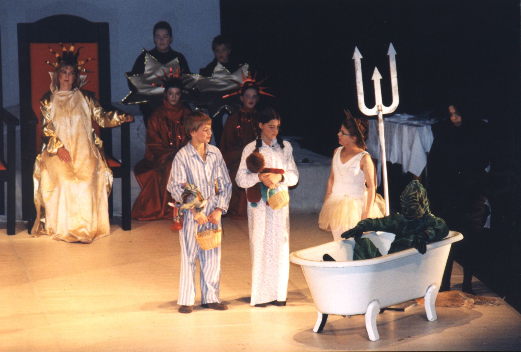 | Iserlohn. (sky) „Ach, wenn die Kinder doch nur artig wären““ seufzte das verschrumpelte Sandmännchen, während es mit strengen Augen überwachte, wie seine ihm untergebenen Sternchen sich eifrig polierten. „Seid mir bloß artig“, mahnte es auch das Publikum, und prompt rieselte eine Handvoll Sand über die vorderen Reihen: „So, nun ist Ordnung für diese Nacht – ich muß sagen, Sandmännchen hat’s wieder gut gemacht.“ Doch auf den Plätzen dachte nicht im Traum ein Kind daran, seine Augen zu schließen viel zu spannend war es, wer sich alles auf dem Mond ein Stelldichein gab: Der unheimliche Donnermann (Klaus Schotte) samt seiner Blitzhexe (Karen Heese), die bezaubernde Nachtfee (Sandra Schmidtchen) oder der sich in einer Badewanne räkelnde Wassermann (Frank Roßmann) – selbst die dicke Wolkenfrau (Uta Preuße) schwebte an. Mittendrin Peterchen (Dennis Treck) mit Schwester Anneliese (Karna Wegner), dem auf seiner Mondfahrt mit Käfer Sumsemann (Björn Plutka) noch viele andere sonderbare Wettergestalten begegneten. Eine glanzvolle Premiere feierte das Schauspielensemble Iserlohn am Samstag im ausverkauften Parktheater mit seinem Märchenstück „Peterchens Mondfahrt“. Was in enger Zusammenarbeit mit dem Ballettstudio Bauer und der Musikschule dort auf die Bühne gebracht wurde, beeindruckte in beiden Aufführungen nicht nur die Kinder sichtlich. Es war eine Inszenierung von Iserlohner Laiendarstellern, wie sie an Aufwand und Mühen bisher selten in der Waldstadt zu sehen war. Regisseur Matthias Hay hatte ganze Arbeit geleistet, die Vielzahl an Darstellern zu koordinieren – darunter auch beachtenswert viele Kinder, die ihre Rollen bei der Premiere meisterten, als täten sie das jede Woche. Herausragend auch Matthias Hays Leistung, Live-Musik, Ballett und Schauspiel kindgerecht miteinander in Einklang zu bringen. Selbst die Toneffekte wurden dazu vom Iserlohner Künstler Thomas Reinecke eigenhändig produziert. Allein die Tatsache, daß während des Stücks nichts aus der Konserve stammte, Requisiten mit viel liebe zum Detail zur Geltung kamen und das alles nach unermüdlichem Einsatz von fast vierzig Darstellern und zwei Dutzend Mitwirkenden hinter der Bühne, konnte die Aufführungen am Wochenende zu einem besonderen Erlebnis für das Publikum machen. Die Begeisterung für das Stück ist groß – auch die Aufführung heute nachmittag ist seit Wochen ausverkauft. |