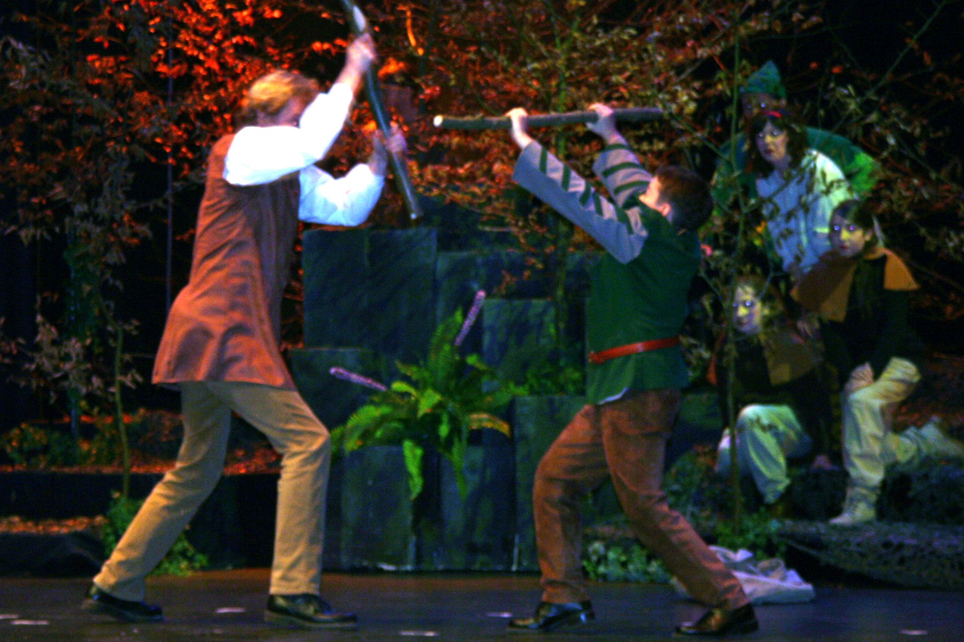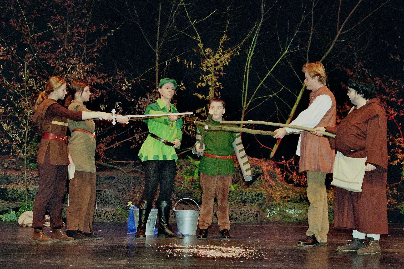 Mit seiner originellen Inszenierung erntete das Schauspielensemble unter der Regie von Matthias Hay nicht nur vom jungen Publikum tosenden Beifall. Die von Uta Preuße verfasste Interpretation betont auf humorvolle Weise jene Welten, die in der traditionellen Legende verschwiegen werden. In das englische Volksmärchen mischt sich aktuelle Sozialkritik. Hinter der Maske der tugendreichen Helden, liebreizenden Schönheiten und der fiesen Bösewichte verbergen sich exzentrische Charaktere. Wer wusste schon, dass der Sheriff zugleich Rock’n’Roll-Fan und Muttersöhnchen war? Und dass der Sturz des ungerechten Herrschers nicht nur dem Listenreichtums Robin Hoods, sondern auch der betäubenden Wirkung von Schoko-Milchshakes und der Inkompetenz seiner Mitarbeiter zu verdanken ist? Mit musikalischen Einlagen, einem imposanten Bühnenbild und glänzenden schauspielerischen Darbietungen gelang dem Ensemble nach einjähriger Probezeit ein hervorragendes, humorvoll überspitztes Stück. Kindertheater wie dieses gehört seit zehn Jahren zum Repertoire des Schauspielensembles, ein Theaterstück für Erwachsene ist in der Vorbereitung: im Mai wird Shakespeares „Macbeth“ im Parktheater aufgeführt.