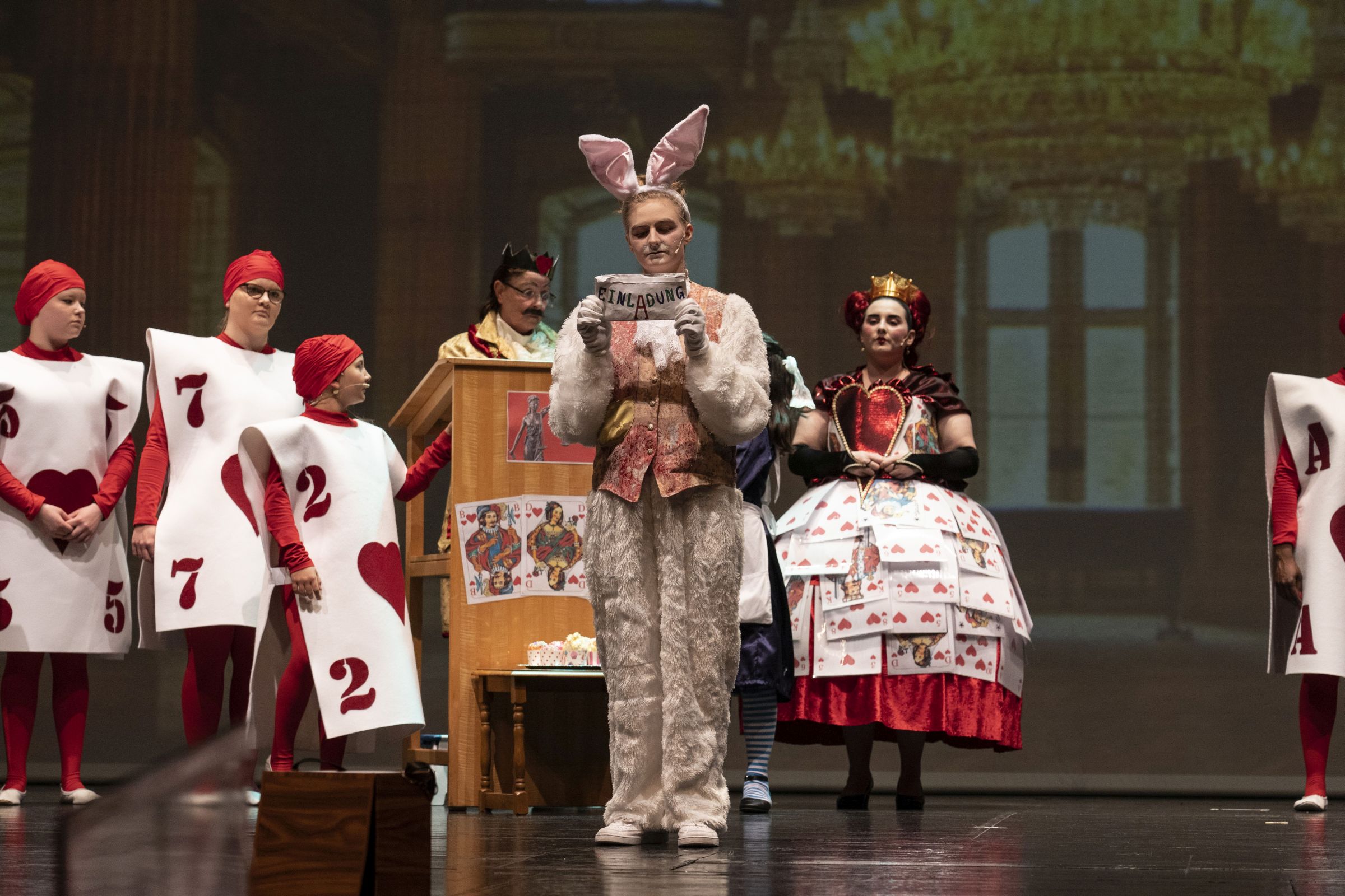 Die Geschichte von Alice im Wunderland nach dem Kinderbuch von Lewis Carroll ist hinlänglich bekannt: Alice folgt einem weißen Kaninchen und gelangt auf wundersame Weise ins aufregende Wunderland. Dort trifft sie auf viele merkwürdige Bewohner wie zum Beispiel den verrückten Hutmacher und die freche Grinsekatze. Auch das weiße Kaninchen, das stets in Eile ist, taucht immer wieder auf. Alice schrumpft und wächst, feiert Nicht-Geburtstage und findet sich schließlich zum großen Showdown beim Krocketspiel gegen die grausame Herzkönigin wieder.